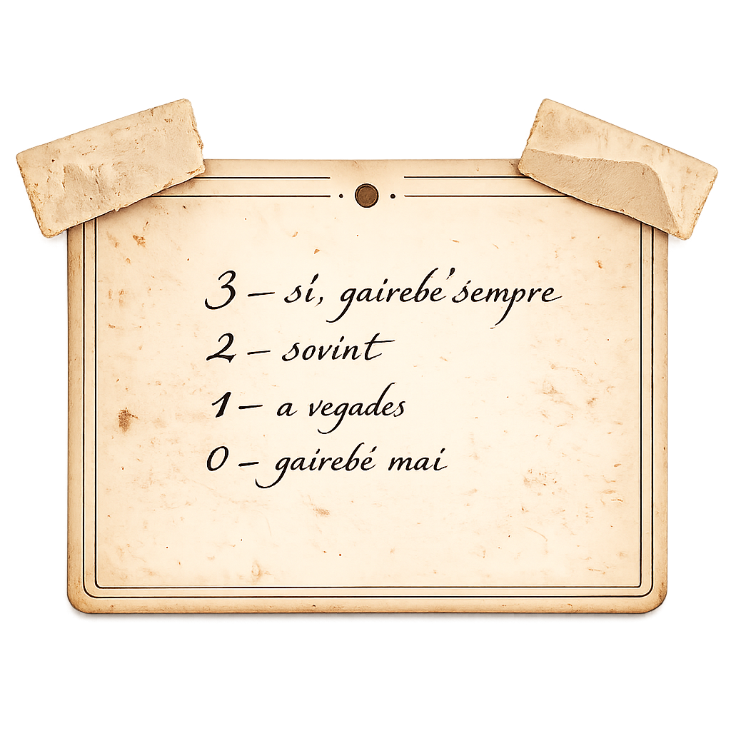Respon totes les preguntes amb sinceritat. Si en deixies sense respondre, els càlculs finals poden no ser fiables.